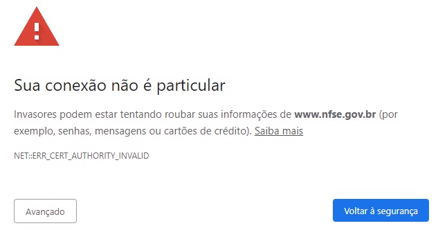 Não tem jeito, tem que acessar assim mesmo até eles resolverem esses problemas. Cklique em “Avançado”, e “Ir para www.nfse.gov.br (não seguro)”