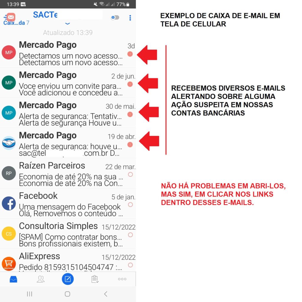Mas o procedimento de verificação é o mesmo, para todos aqueles e-mails que você recebe, informando ou solicitando uma atividade.