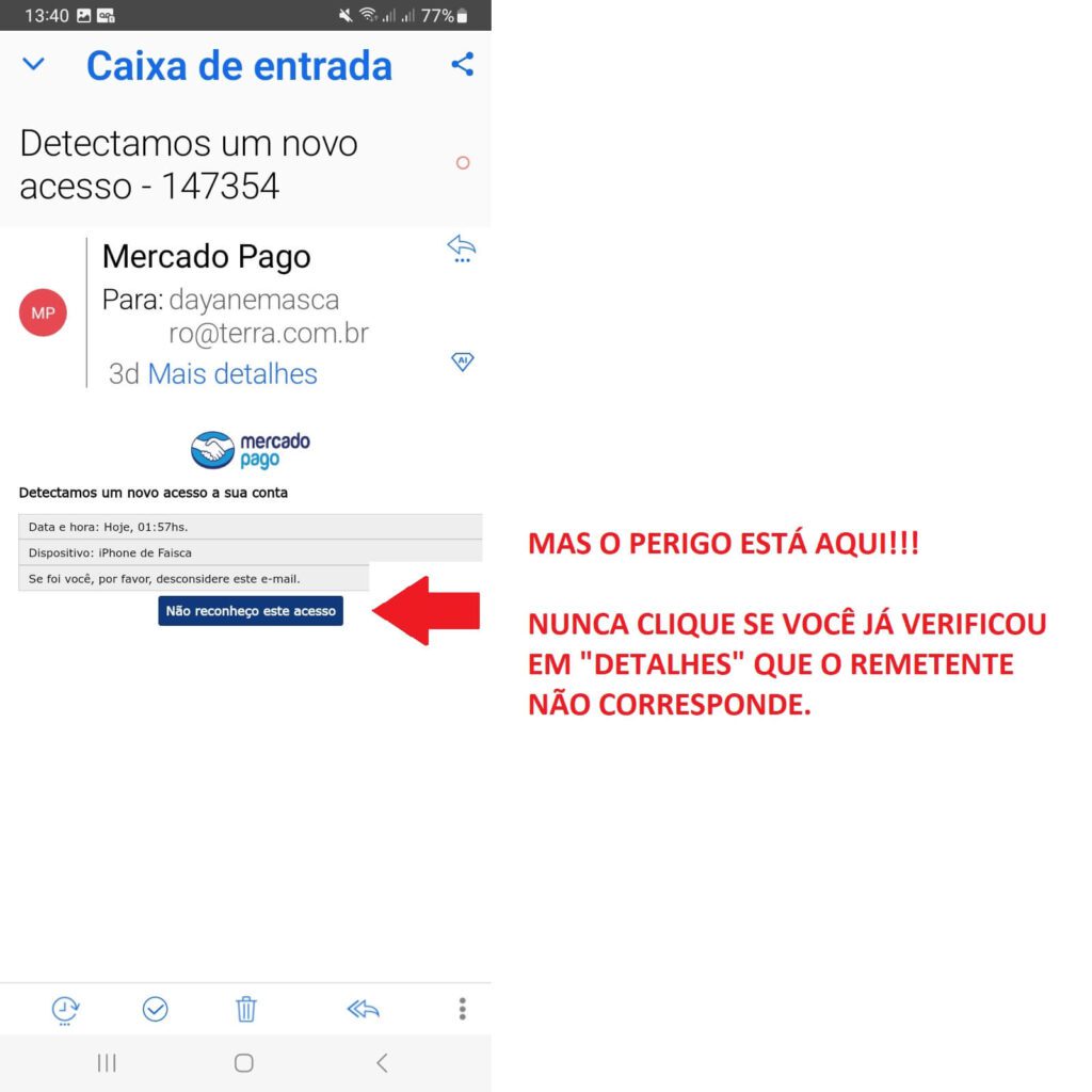 Você viu apenas um exemplo de Phishing, que é a tentativa de capturar dados e invadir contas.
